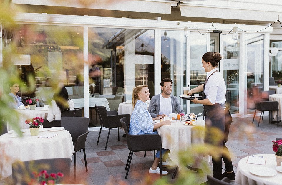 Our half-board package offers not only delectable evening meals and a delightful breakfast but also a beautifully set table and, above all, breathtaking panoramic views of the Merano region. To make the most of this experience, bask in the many sunny days on our scenic terrace. Situated right on the Falknerweg, our terrace allows you to take in the stunning landscape while enjoying your morning coffee or a delicious dinner. A true feast for the senses awaits you in Tirolo at our charming hotel with half-board.