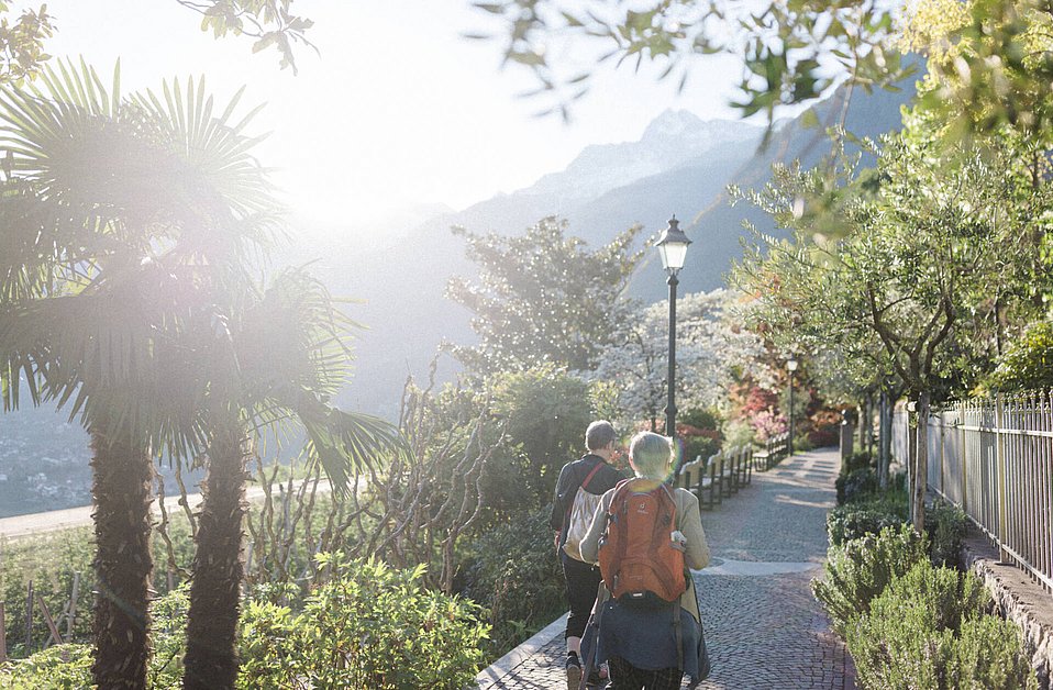 So ein Glück, wir liegen direkt an der Falknerpromenade, die mit Blick auf drei Schlösser, herrliche Aussicht und mediterranes Flair bietet. Von hier geht es auch direkt zu Fuß zum berühmten Schloss Tirol. Aber auch sonst lassen sich rund um Dorf Tirol viele feine Wege erkunden. Am berühmtesten davon vielleicht der Apfelweg und der Weinweg, die an den sonnengeküssten Weingärten und Apfelbäumen vorbeiführen. Auch die Rundwanderung am Tappeinerweg bietet fabelhafte Ausblicke auf den Meraner Talkessel.