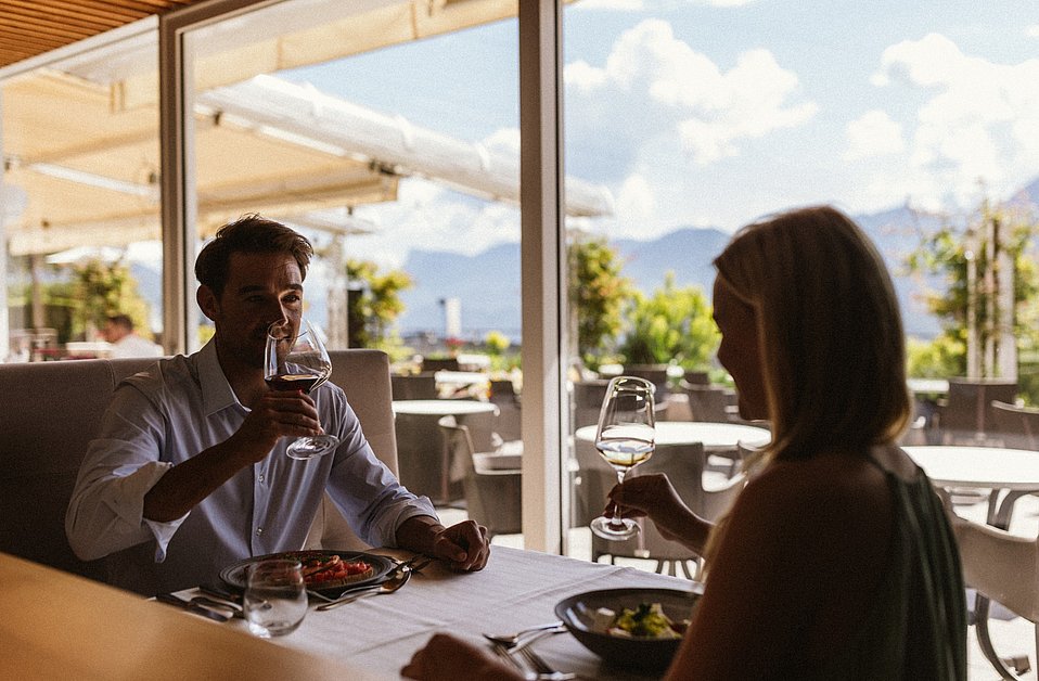 Gustate la nostra colazione ogni giorno dalle 7:30 alle 11:00, mentre il menù della cena nel ristorante del nostro hotel a Tirolo viene servito tra le 18:30 e le 20:00. Saremo lieti di consigliarvi anche il vino più adatto per accompagnare i vostri piatti. Naturalmente potrete anche prendere posto sulla nostra terrazza, dove, oltre a gustare le nostre specialità, potrete anche ammirare una vista straordinaria. Non vi è venuta voglia di prenotare un tavolo nel nostro Paradis?