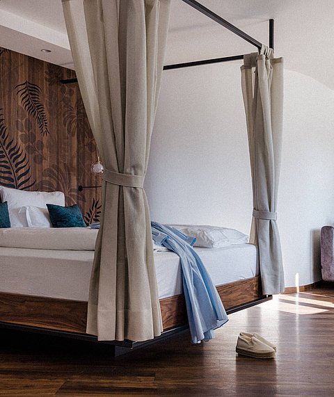 Carefully selected and lovingly arranged details so that each and every room has its own unique character. After all, our rooms and suites must be as unique as our guests. A modern interior, equipped with everything your heart desires and yet simply cosy. The custom-made furniture is crafted from carefully selected woods for each room and, together with hand-picked fabrics and decorations, they ensure a wonderful sense of cosiness. This is where you can happily fall asleep and wake up full of energy. Discover your favourite place in our Paradies in Tirolo!