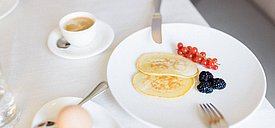 The enticing scent of tea and coffee awakens your spirits in the morning. And if the weather is good, you can enjoy the almost magical view of Merano from our panoramic terrace already for breakfast. Savour fresh bread, specialities of South Tyrolean cold cuts and cheese, farm-fresh fruit and vegetables, traditional sweet dishes, various types of egg- based dishes, homemade spreads and fresh porridge.