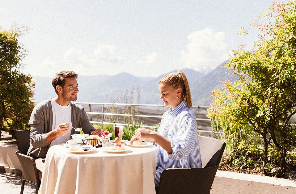 Start your day at Hotel Paradies with a hearty breakfast, open to both hotel guests and visitors. We’re happy to reserve you a sun-kissed spot in advance. Indulge in freshly brewed Italian coffee, fragrant bread, premium cold cuts, fine cheeses, and a variety of regional and seasonal specialties—all served in the cosy ambiance of our restaurant in Tirolo.