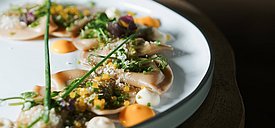 Essen ist bei uns eine Herzensangelegenheit. Das können Sie auch schmecken. Denn wenn wir abends mit unserem kreativen 5-Gänge-Menü im Rahmen der Halbpension verwöhnen, kann man die Leidenschaft, mit der wir kochen, auch auf den Tellern sehen – genauso wie beim wöchentlichen 7-Gänge-Galamenü und den wechselnden Themenabenden. Frisch zubereitet aus ausgewählten Zutaten aus der Region, verwandeln wir traditionelle Rezepte in moderne Genusshighlights. Wir laden Sie ein, die Geschmacksvielfalt Südtirols und der Welt als Ausklang eines erlebnisreichen Tages kennenzulernen. Eine passende Begleitung für Ihre Gaumenfreude wählen Sie am besten aus unserer Weinkarte. Wir verwöhnen nicht nur unsere Hausgäste, sondern heißen auch externe Besucher herzlich willkommen.