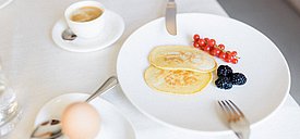 Der Duft von Tee und Kaffee weckt morgens die Lebensgeister. Und bei Schönwetter beeindruckt schon zum Frühstück die magische Aussicht über Meran auf unserer Panoramaterrasse. Genüsslich stärken Sie sich mit frischem Brot, Wurst- und Käsespezialitäten aus Südtirol, erntefrischem Obst und Gemüse direkt vom Bauernhof, traditionellen Süßspeisen, verschiedenen Eierspeisen, hausgemachten Aufstrichen und täglich frischem Porridge für den Tag.