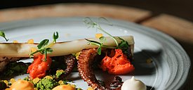 Fein ausgewählte regionale Produkte und saisonale Geschmacks-Highlights bilden die Ausgangsbasis für unsere Gerichte. Jeden Tag zaubern wir ein kreatives 5-Gänge-Menü in unserem Restaurant in Dorf Tirol auf den Tisch und damit ein Lächeln in das Gesicht unserer Gäste. Einmal wöchentlich verwöhnen wir mit einem 7-Gänge-Galamenü. Sowohl traditionelle Rezepte als auch internationale Einflüsse verbinden wir zu einzigartigem Genuss. Natürlich können Sie auch nur einzelne Speisen aus unserem Menü wählen.